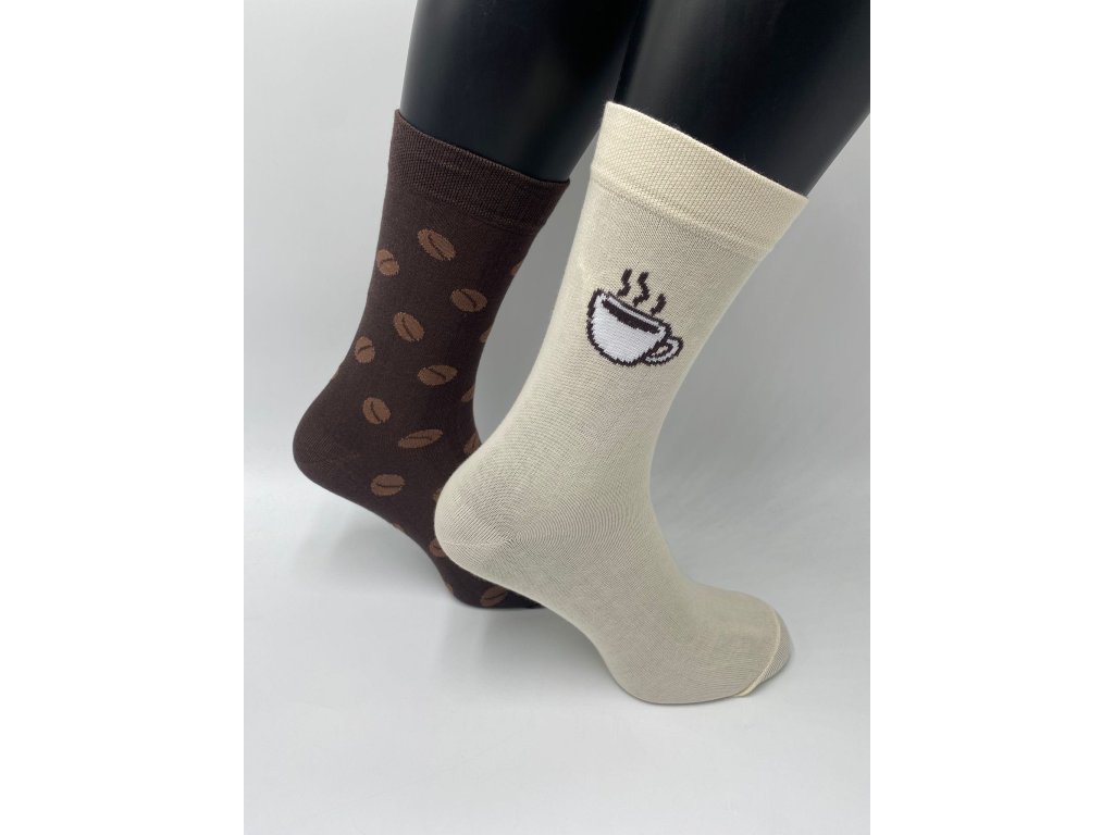 Začni den s vůní kávy! Tyto originální ponožky kombinují béžový design s motivem hrnku kávy a tmavě hnědý vzor s kávovými zrny. Jsou vyrobené z kvalitní bavlny a přinášejí maximální pohodlí i styl pro každý běžný den.